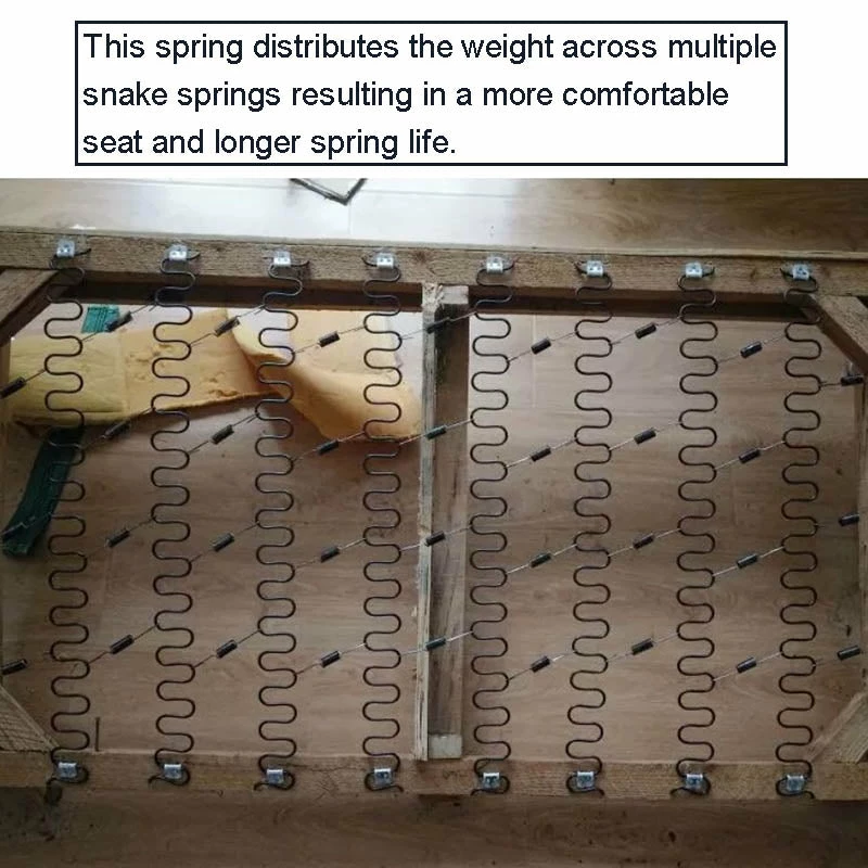 There are only 2-3 springs under force when you sit on the sofa. The long-term continuous stress may deform the spring, and sag the sofa. By connecting snake springs with this balance spring, the force can be distributed to multiple springs resulting in a more comfortable seat and longer spring life.