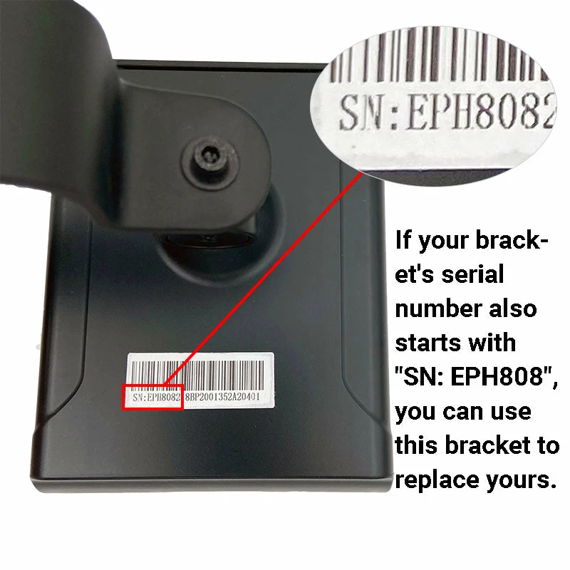 There is a barcode sticker on the back of the PH808 bracket, the serial number under the barcode starts with “SN: EPH808”, if your bracket’s serial number also starts with “SN: EPH808”, you can use this bracket to replace yours.