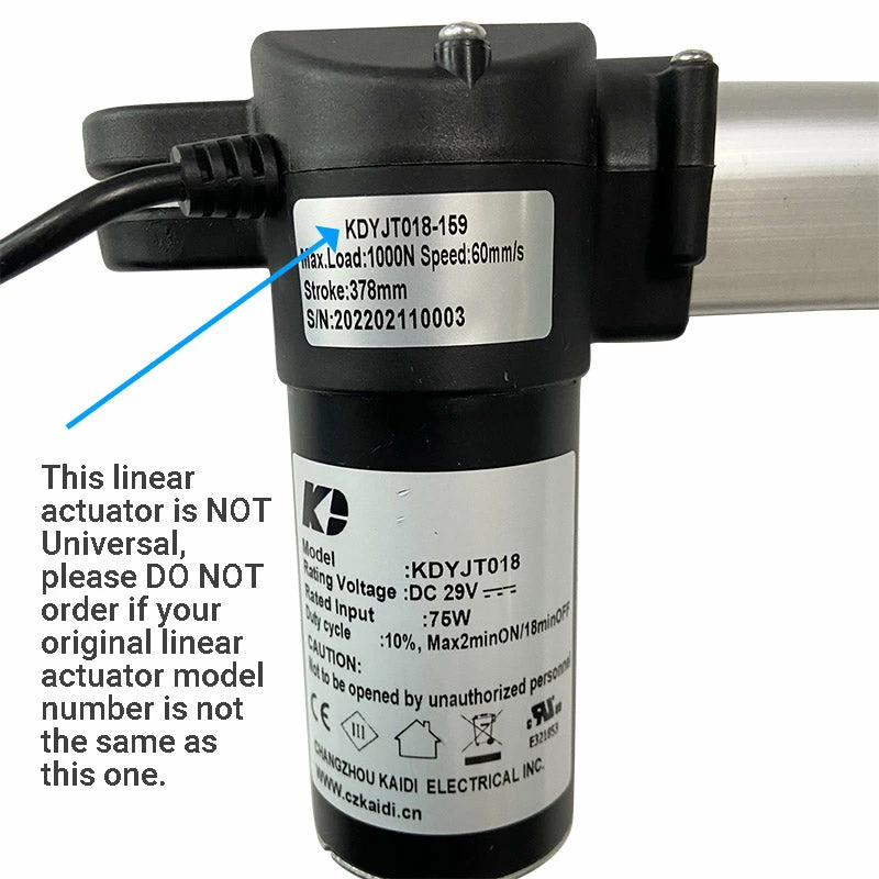 - DO NOT ORDER if your linear actuator’s model number is not KDYJT018-159