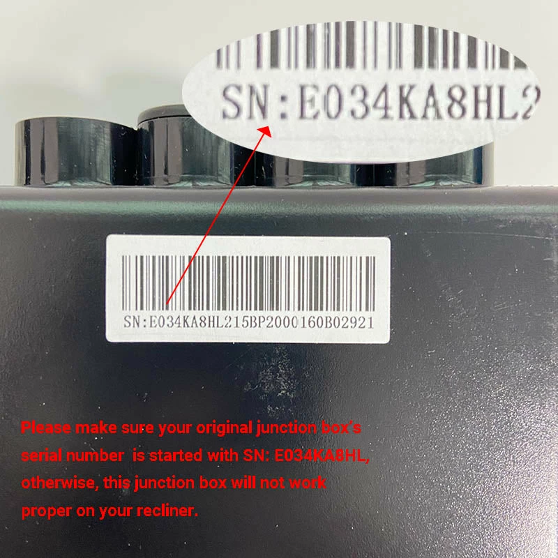 To decide if this junction box can replace yours, please check your original junction box, find the barcode sticker, and check if the serial number on the sticker is started with SN: E034KA8HLÂ (please refer to the following image):