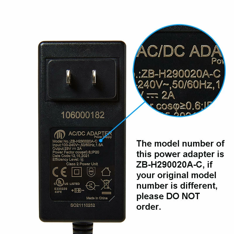 - This power adapter is not universal as its plug is a special 90° trapezoidal plug. If the model of your original power adapter is not ZB-H290020A-C, please do not buy it.